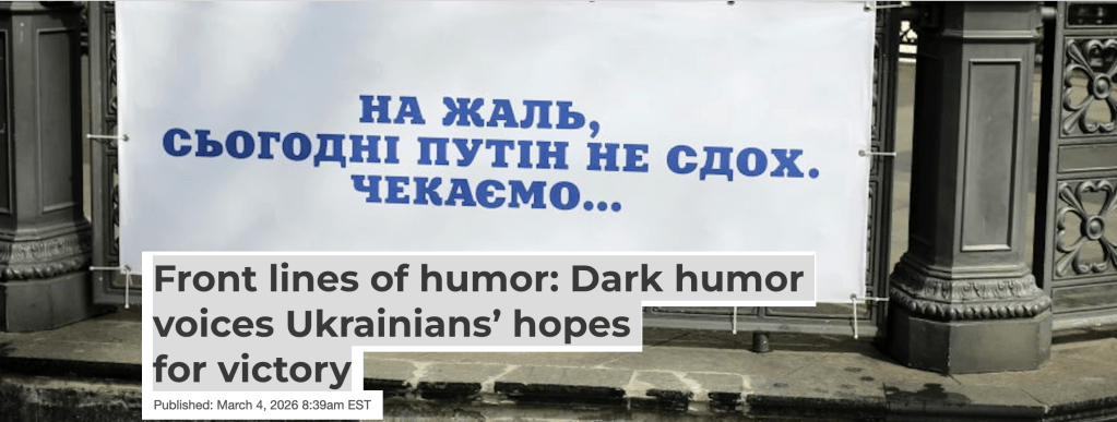Front lines of humor: Dark humor voices Ukrainians’ hopes for victory. The Conversation. March 4, 2026.