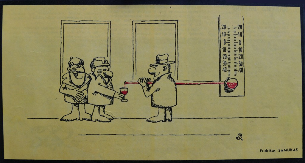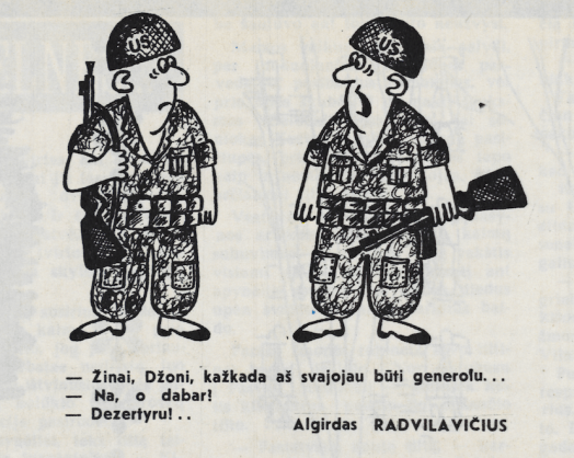 G. Kunickis “Look, Johnny, now the entire world knows our language…” Šluota,1965, no. 5, back cover.